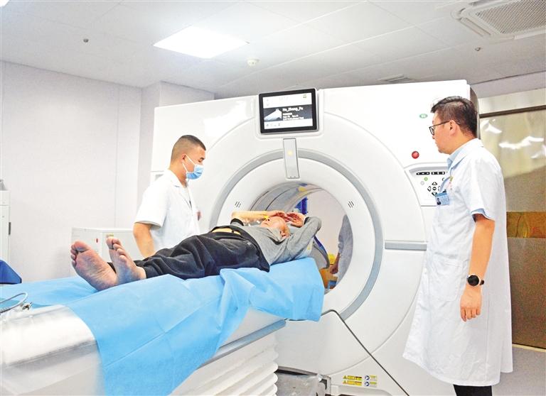 六盘水市人民医院建设省级区域医疗中心,购置了先进医疗设备。图为医护人员辅助患者准备拍片子。贵州日报天眼新闻记者 胡家林 摄